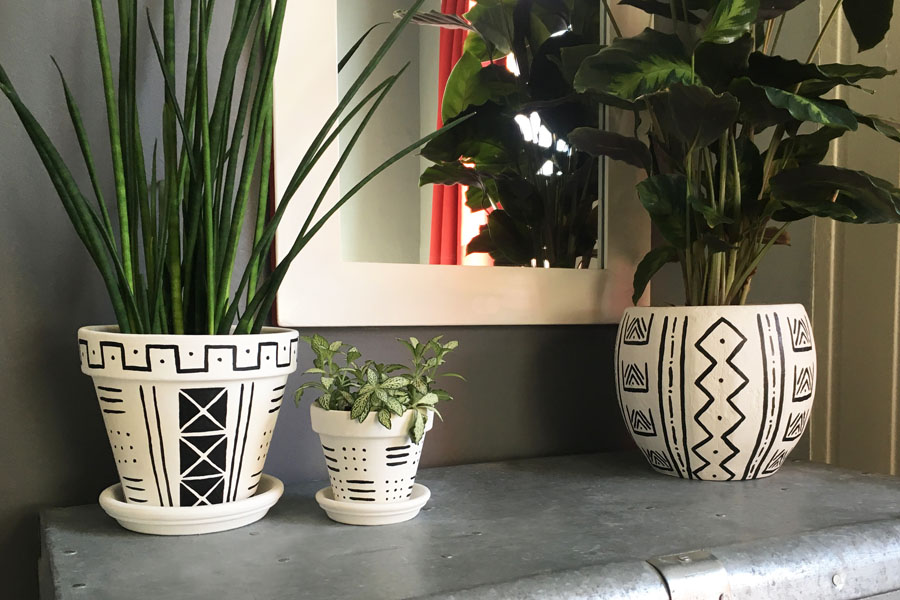 DIY mudcloth plantenpotjes